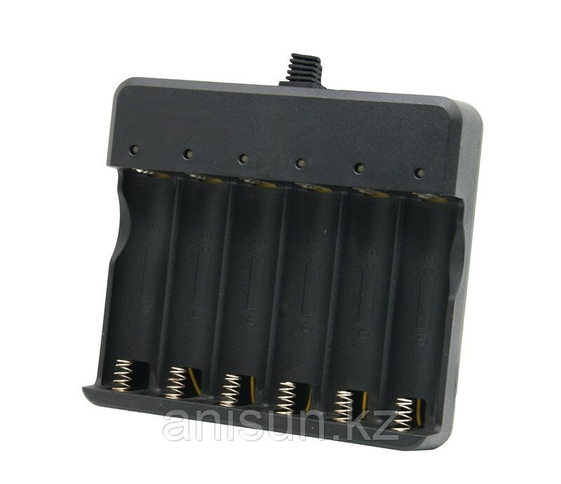 Проводное зарядное устройство на 6 слотов с индикаторами для аккумуляторов 18650. При зарядке светится красный индикатор, когда аккумулятор полностью заряжен индикатор становится зелёным. Будет очень еще→удобным для тех, кому требуется заряжать большое количество аккумуляторов одновременно. Технические характеристики: типоразмер аккумулятора: 18650; напряжение питающей сети: 220 В; индикатор заряда элементов питания: светодиод; страна-изготовитель: Китай