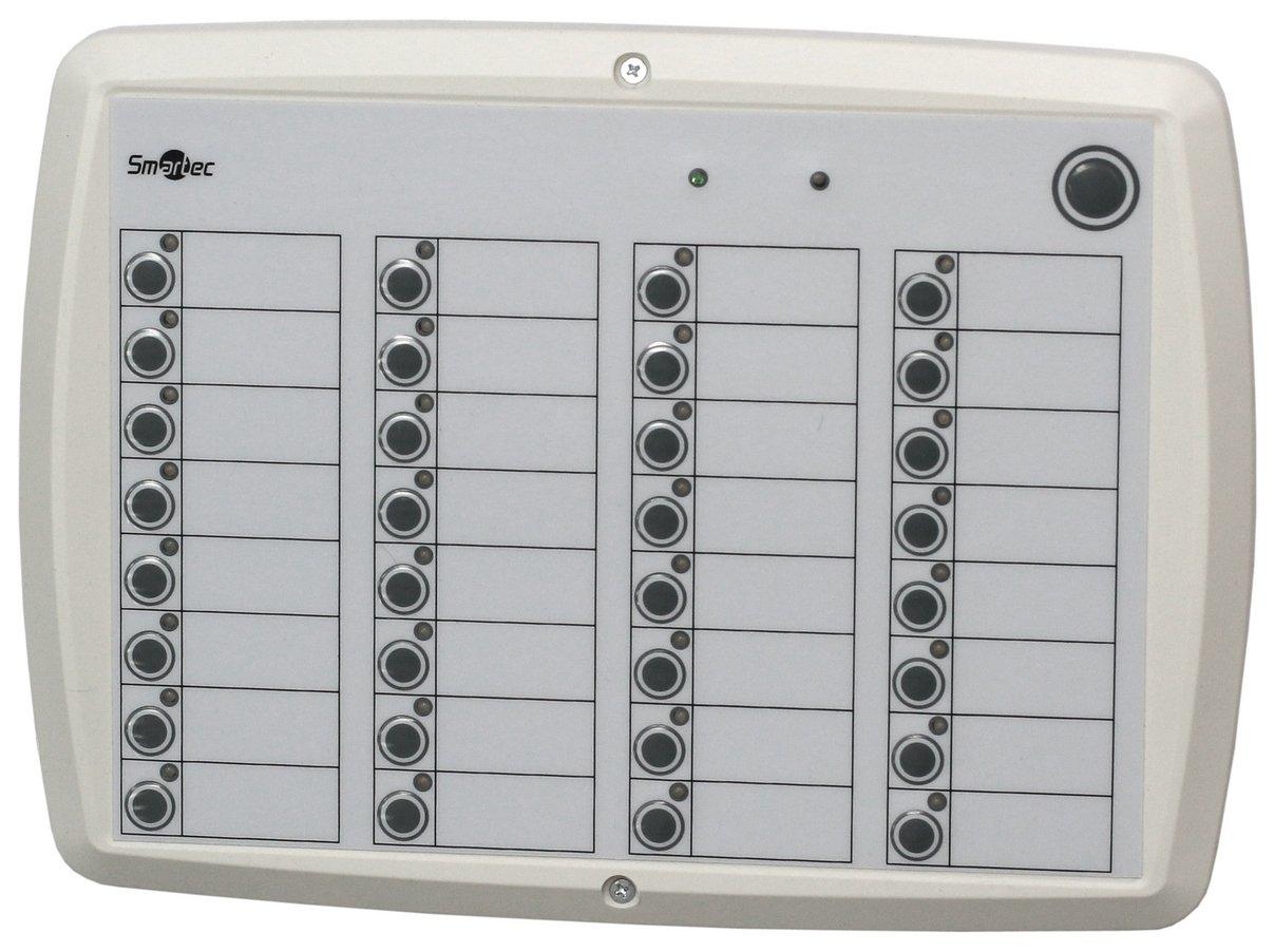 Назначение изделия Сетевая панель ST-NC032 предназначена отображения статуса и управления различными элементами интегрированной системы безопасности, например, разделами охранной сигнализации. Она мож еще→ет использоваться совместно с контролерами ST-NC221 и ST-NC441. Устройство имеет 32 свободно программируемых элемента (световой индикатор/кнопка) и порт подключения считывателя для авторизации сотрудника при выполнении каких-либо операций. Особенности •32 двухцветных индикатора •32 кнопки •Свободно программируемые индикаторы/кнопки •Управление при авторизации по внешнему считывателю •Работа с контроллерами ST-NC441 и ST-NC221 •Датчик вскрытия
