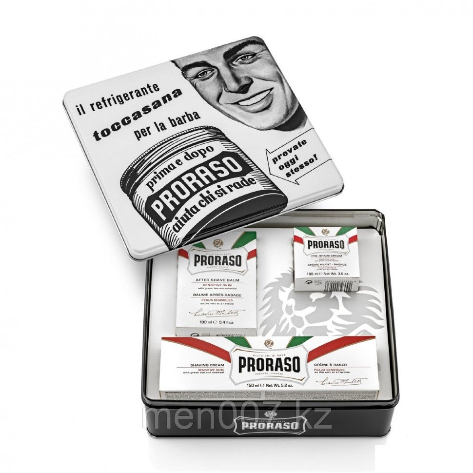 В набор Proraso Toccasana входит 3 средства белой серии, созданной для чувствительной кожи Прешейв (крем до бритья) 100мл Крем для бритья 150мл Лосьон после бритья 100мл Данная серия предназначена для еще→чувствительной кожи, предотвращающая раздражение. В состав данной линейки входят масло зеленого чая и овес, а так же витамин Е. Зеленый чай богат минералами и полифенолами, а также это