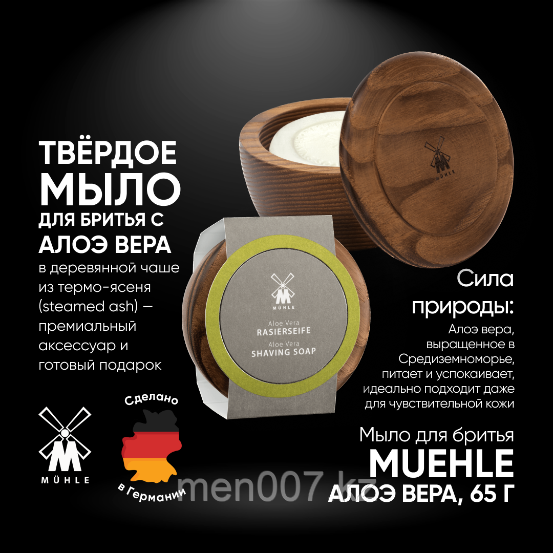 Твердое мыло для бритья MUEHLE в декоративной чаше из ясеня, с нежным и деликатным ароматом Алоэ Вера. Мыло для бритья наилучшим образом подготавливает кожу и растительность лица для мягкого бритья, о еще→бладает смягчающим и глубоким увлажняющим эффектом. Наряду с буком и дубом, ясень — одна из самых важных местных лиственных пород. Для изготовления чаши дерево обрабатывается при