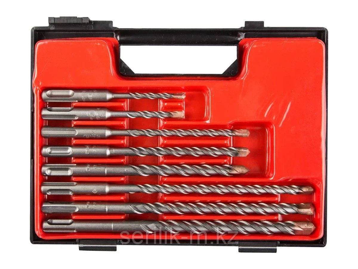 Набор буров SDS Plus по бетону для перфоратора ЗУБР 29314-H8, ЭКСПЕРТ, 5 х 110, 6 х 110, 6 х 160, 8 х 160, 8 х 210, 10 х 160, 10 х 210, 12 х 210 мм, 8 шт Набор буров SDS Plus по бетону для перфоратора еще→ЗУБР 29314-H8, применяются при сверлении отверстий в бетоне, граните, кирпичной кладке, камне и твердых известняках. Повышенный ресурс. Конструкция головки бура из твердосплавной пластины ВК85 с двумя резцами и центрирующим