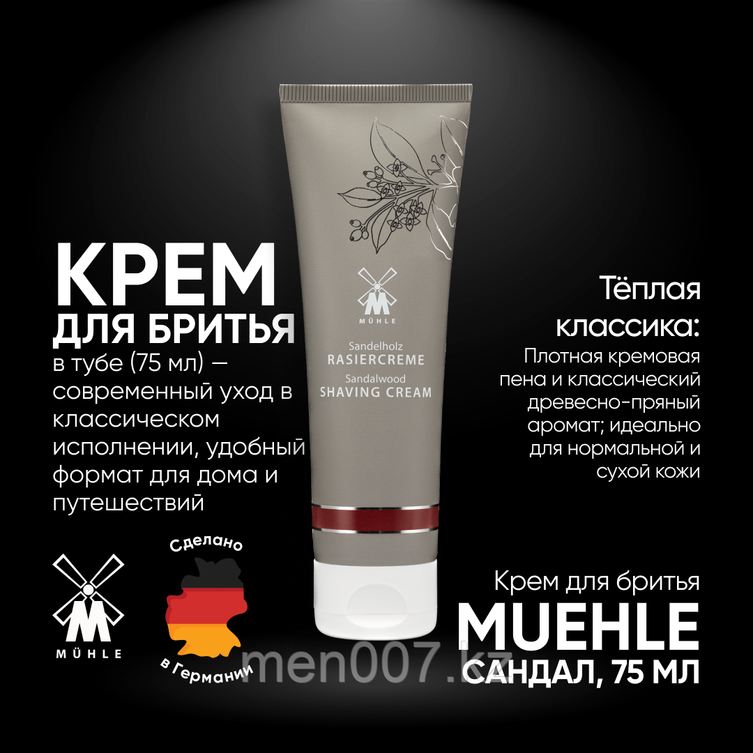 Крем для бритья MUEHLE с чувственным ароматом кориандра и аниса. Экстракт сандалового дерева и эфирные масла ухаживают за кожей и освежают. Применение: увлажните помазок, нанесите небольшое количество еще→крема на область предполагаемого бритья и взбейте пену круговыми движениями. Чем жестче и гуще растительность лица, тем дольше следует массировать кожу. Помазок с мыльной пеной