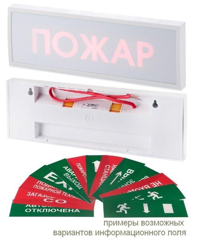 Назначение изделия Оповещатель охранно-пожарный световой (далее оповещатель) предназначен для обозначения эвакуационных выходов, путей эвакуации людей при возникновении опасности, а так же в качестве еще→информационных табло. Оповещатель может комплектоваться следующими креплениями: универсальное, торцевое, подвесное. Видеоматериалы