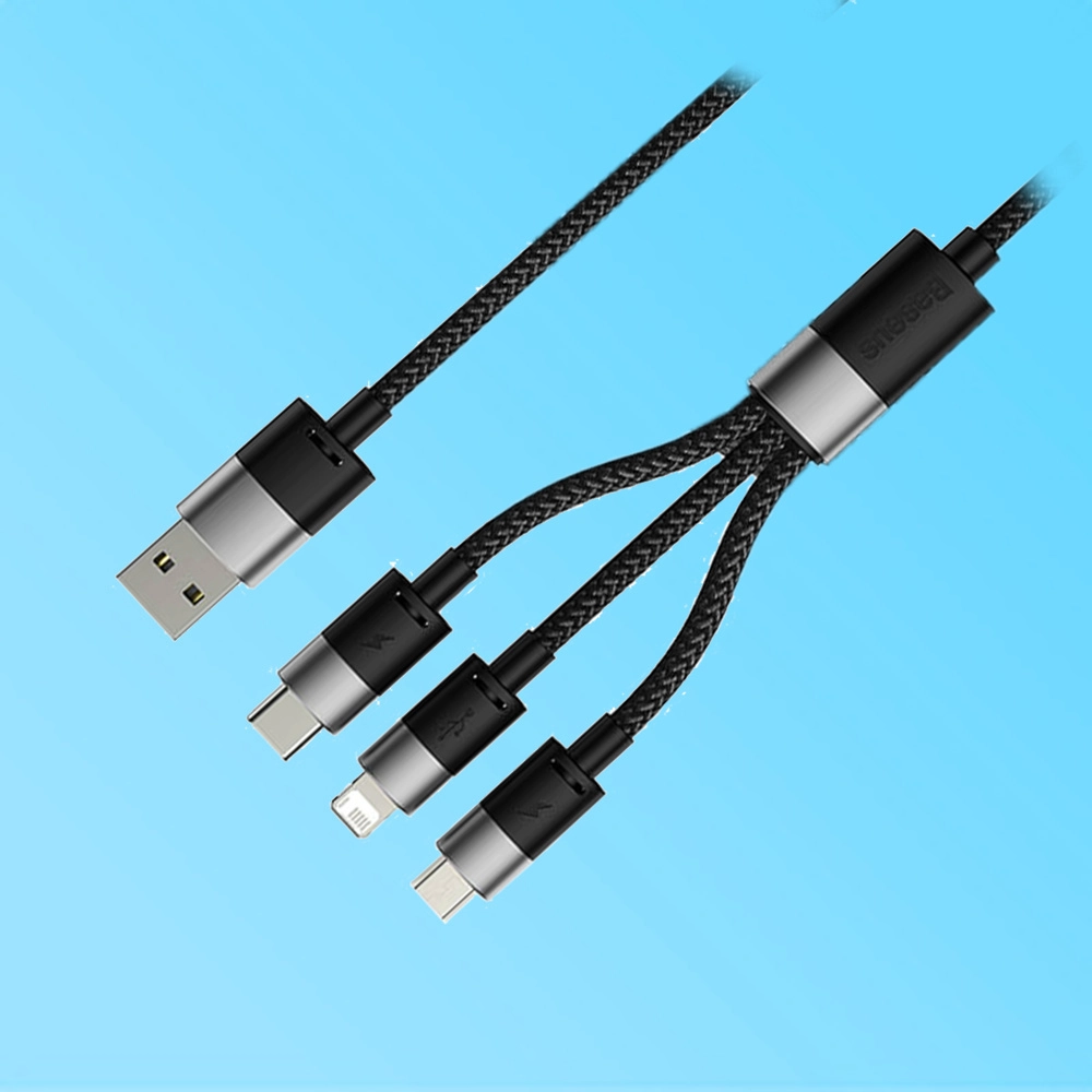 Baseus StarSpeed 3-in-1 — это универсальное зарядное решение, избавляющее от вороха проводов. Кабель оснащен тремя самыми популярными коннекторами: Micro-USB, Lightning (iP) и USB Type-C. Благодаря су еще→ммарному току 3.5А, он способен эффективно распределять энергию между тремя подключенными гаджетами одновременно. Одновременная зарядка — заряжайте смартфон, планшет и наушники (или портативную колонку)