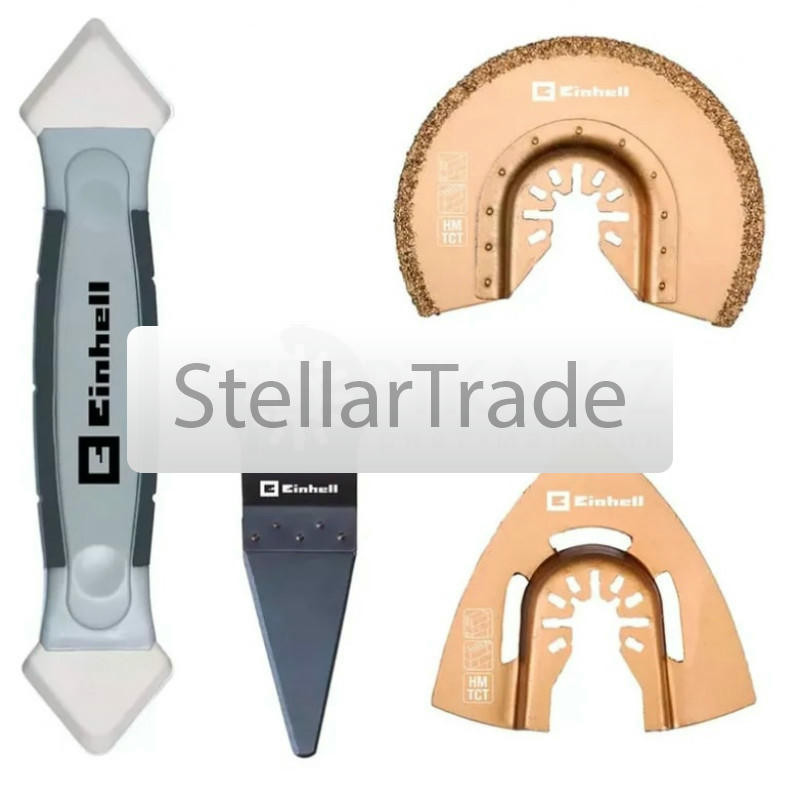 Набор оснастки для реноватора Einhell Multitool Set tiles 4шт. 49708750 - это практичный аксессуар для различных мультитулов от Einhell и мультитулов с системой Starlock. С помощью набора плитка, стык еще→и и силикон можно легко обрабатывать и удалять. Так что набор является обязательным для работы с плиткой и ремонта плитки. Набор многофункциональных инструментов оснащен практичной функцией быстрой смены