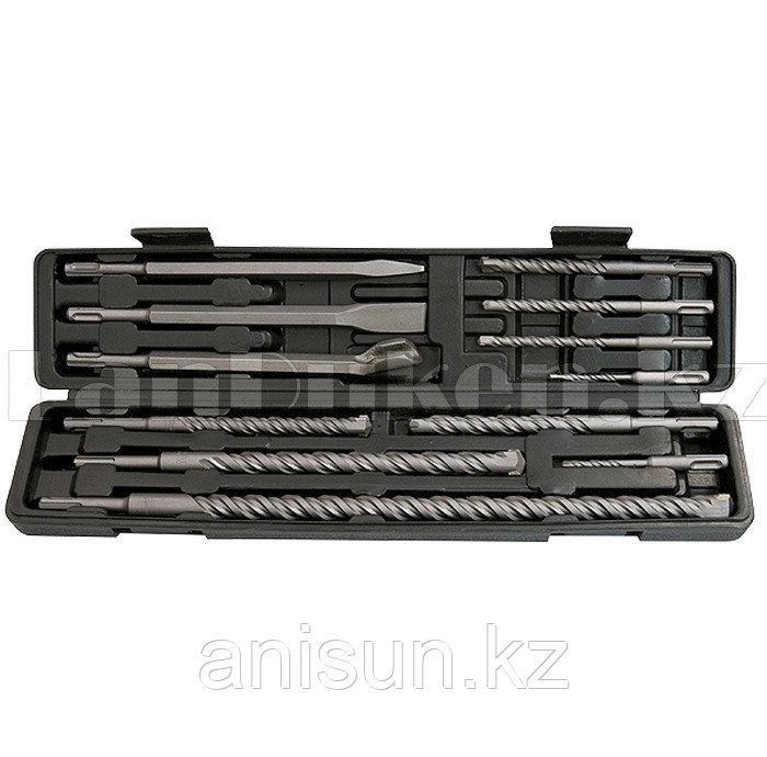 Буры по бетону, входящие в набор, изготовлены из стали марки 40Х. Рабочим элементом является твердосплавная пластина марки ВК8. Рассчитано на ударное сверление. Хвостовик SDS-PLUS.