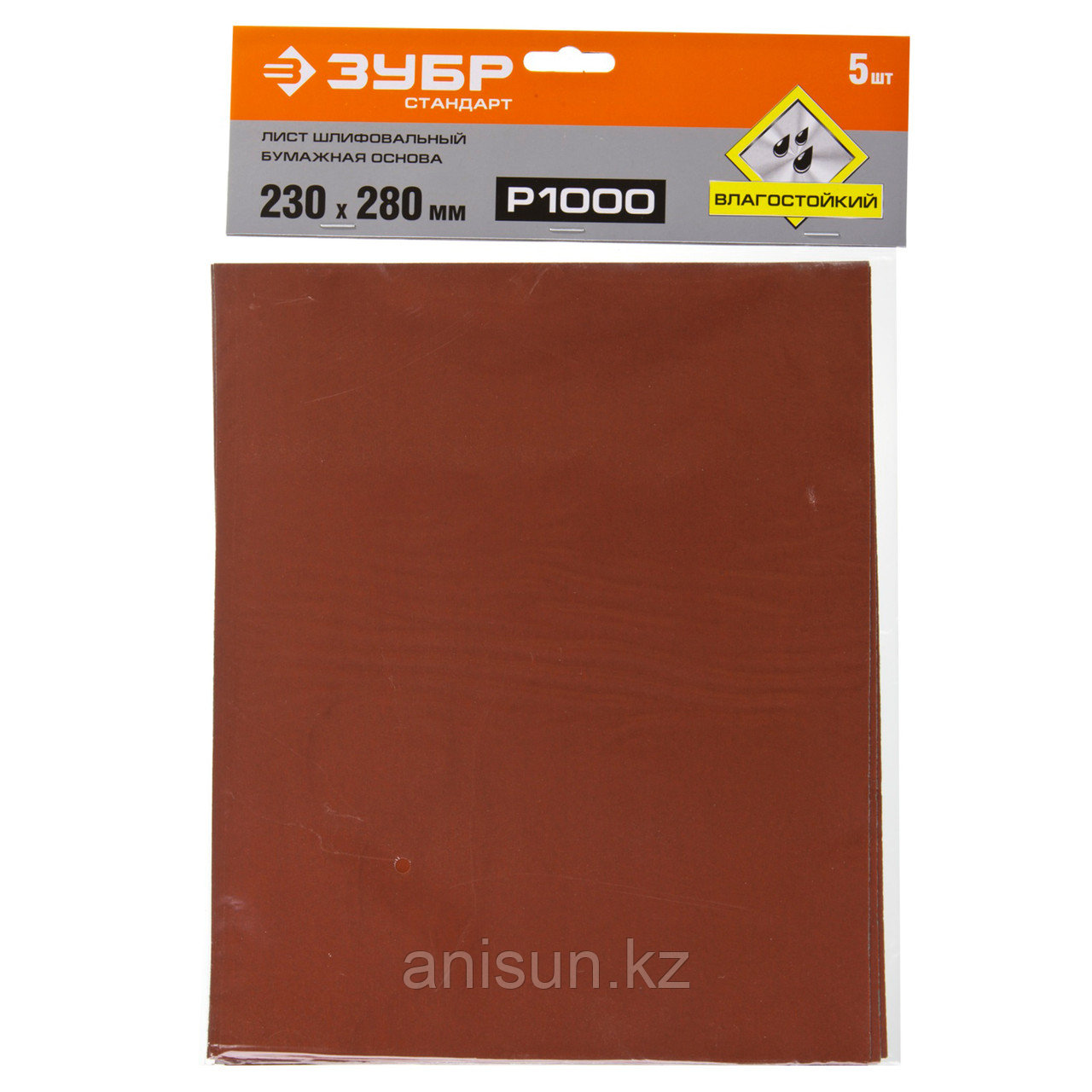Лист шлифовальный ЗУБР "СТАНДАРТ" Р1000 230х280мм 5шт. 35417-1000 - используется при ручном шлифовании. Оснастка обладает высокой производительностью, длительным ресурсом и универсальностью применения еще→при обработке металла, древесины и пластика. Преимущества:Водостойкий тип покрытия абразиваЭлектростатический метод нанесения абразивного зернаНаличие антистатического эффекта