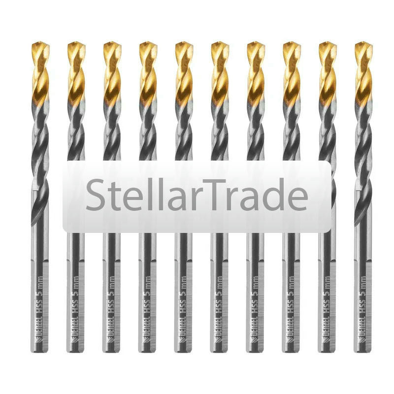 Сверло Denzel 717213 диаметром 5 мм, в комплект входит 10 шт., предназначено для сверления сквозных и глухих отверстий в легированной и нелегированной стали, железе, чугуне, листовом и цветном металла еще→х, пластмассе. Изготовлено из быстрорежущей стали с иооно-плазменной обработкой, благодаря чему достигается повышенная износо- и коррозионная стойкость. Нитридтитановое покрытие