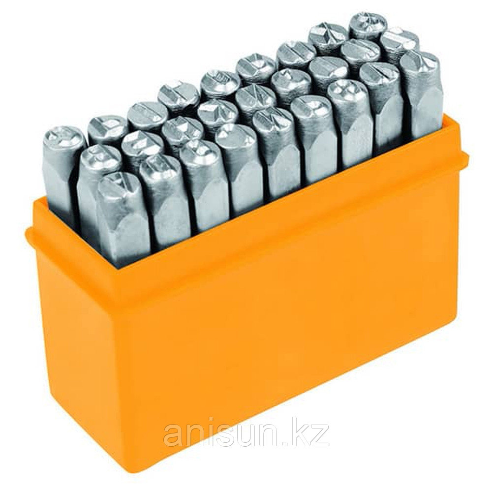 Набор клейм фигурных TOLSEN 6мм 27шт. 25104 - это набор инструментов, предназначенный для нанесения фигурных оттисков или клейм на различные материалы, такие как дерево, кожа, пластик и металл. Эти кл еще→ейма обычно используются для декоративных или идентификационных целей, а также для создания узоров и текстур на поверхности. Буквы латинского алфавита.Комплектация:Клеймы 27 шт.Ящик для хранения 1 шт.
