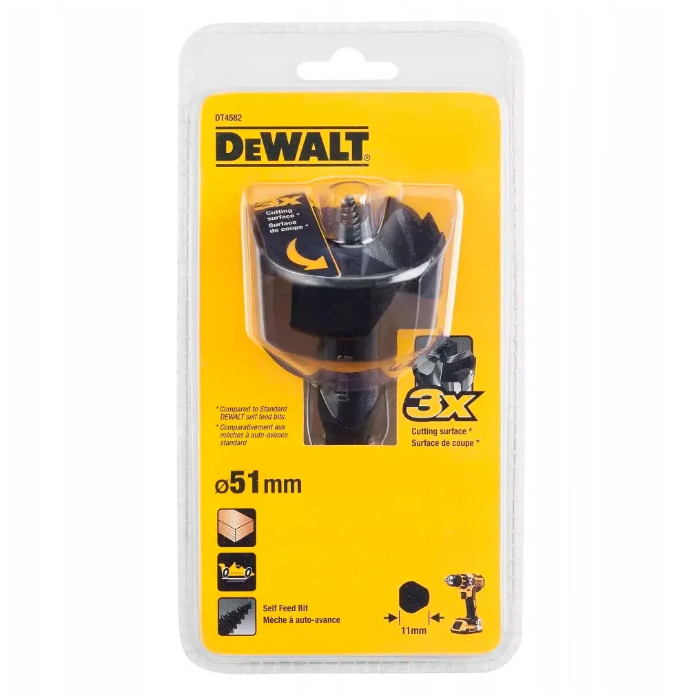 Сверло Форстнера по дереву DeWALT 51мм DT4582-QZ - предназначено для быстрого, чистого и точного сверления сквозных отверстий в твердом и мягком дереве, деревянных щитах и гипсокартоне. Совместимо с еще→сетевыми и аккумуляторными дрелями.