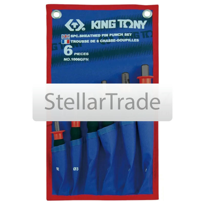 Набор выколоток с протектором KING TONY 6шт. 1006GPN - набор включает в себя 6 выколоток с наиболее часто применяемым рядом размеров. Назначение: для штифтов и шплинтов. Преимущества: еще→Выколотки изготовлены из инструментальной легированной стали с добавлением молибдена. Специальные добавки, входящие в состав сплава, придают инструменту особую прочность и устойчивость к