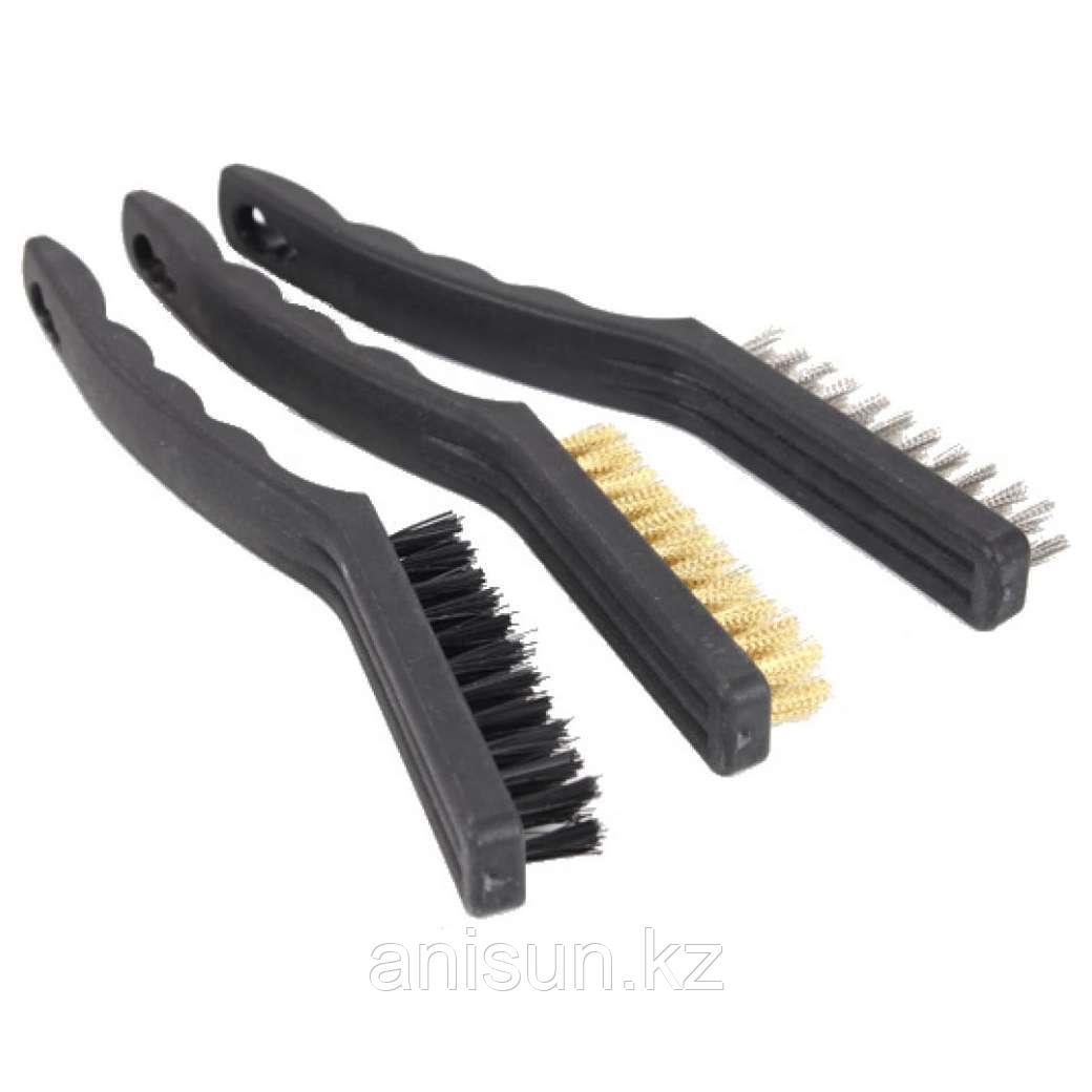 Набор больших металлических щеток MATRIX 3шт. 74863 - используется для грубой зачистки металлических поверхностей. Каждая щетка имеет стальную щетину в пластмассовых корпусах и удобные пластмассовые р еще→учки. Преимущества: Износоустойчивость щетины Комплект из 3 предметов Отверстия на ручках для удобного хранения в подвесном виде Комплектация: Набор больших металлических щеток 3 шт. Упаковка 1 шт.