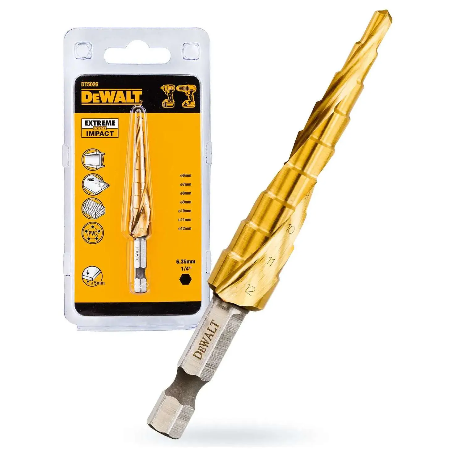 Сверло ступенчатое DeWALT EXTREME 4-12мм DT5026-QZ - используется для сверления и рассверливания отверстий в конструкционной стали, черных и цветных металлов, пластмассы и тонкостенных профилей (до еще→3 мм). Толщина металла может быть от 4 до 34 мм.