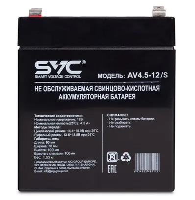 Аккумуляторная батарея SVC AV4.5-12/S 12В 4.5 Ач