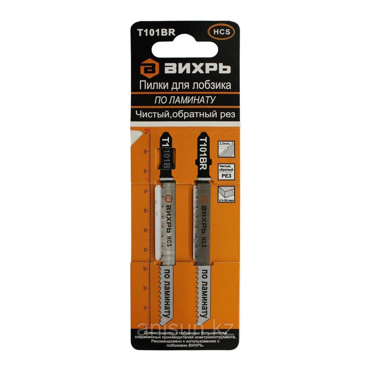 Пилки для лобзика Вихрь Т101ВR по ламинату 100*75мм 2шт. 73/10/5/4 - сделаны из высокоуглеродистой стали. Имеют шлифованные обратные зубья с шагом 2,5 мм для чистых распилов по лицевой стороне. Рекоме еще→ндуемая толщина: фанера 3-30 ммламинат до 30 мм.