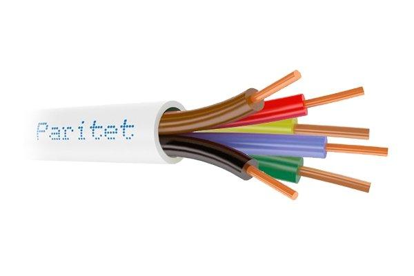 Назначение изделия Кабель с однопроволочными медными жилами, с изоляцией из композиции полиэтилена, с оболочкой из белого ПВХ пластиката, предназначен для внутренней стационарной прокладки. Особенност еще→и Монтаж проводов марки КПСВ производят при температуре не ниже 0°С