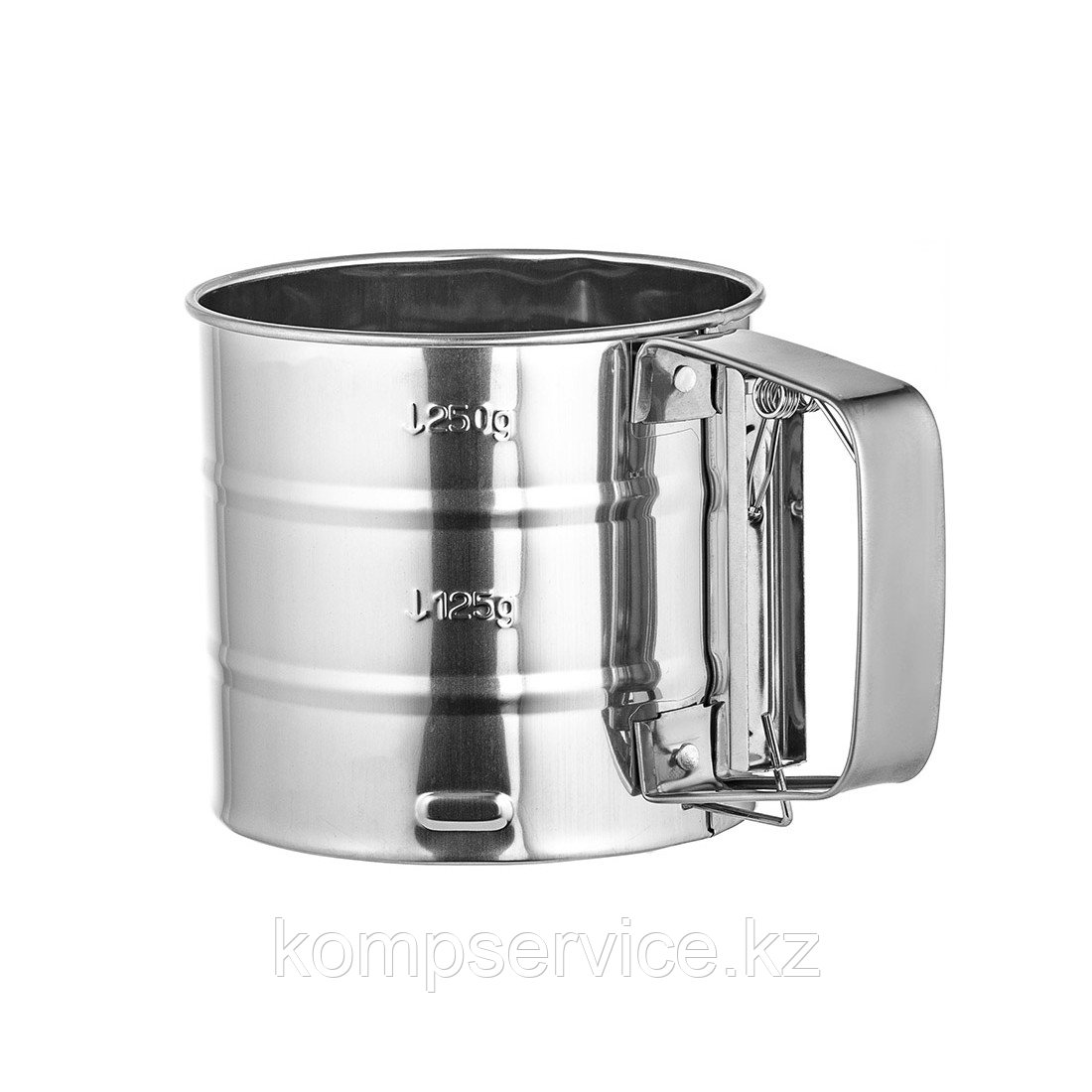 Кружка-сито LARA LR07-40 Кружка-сито – незаменимый помощник на вашей кухне. Просеивайте муку, какао, сахарную пудру и другие мелкие сыпучие продукты. Кроме просеивания и очистки, аксессуар разрыхляет, еще→добавляя тесту воздушности. Простой механизм работы: нажатие на рычаг приводит в движение лопасти с сеткой. Рабочая поверхность изготовлена из надежной хромированной стали. Для точного соблюдения рецептуры на кружку нанесены мерные отметки. Характеристики: Материал - Нержавеющая сталь AISI 201 Мытье - В посудомоечной машине, Ручная мойка Особенности: Мерная шкала