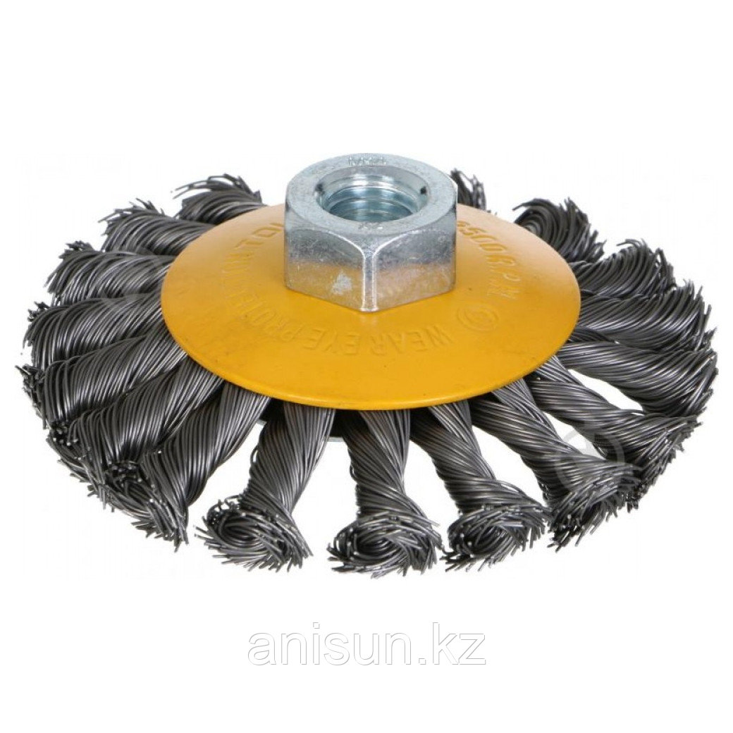 Щетка ТМ Denzel с витой щетиной 0,3 мм, предназначена для щадящей обработки поверхностей, удаления ржавчины, тонкого слоя лакокрасочного покрытия, различных загрязнений, придания шероховатости и матир еще→ования. Тип "Чашка" оптимально подходит для обработки больших плоских поверхностей. Конструкция щетки имеет прочную конструкцию с усиленной гайкой, которая способствует