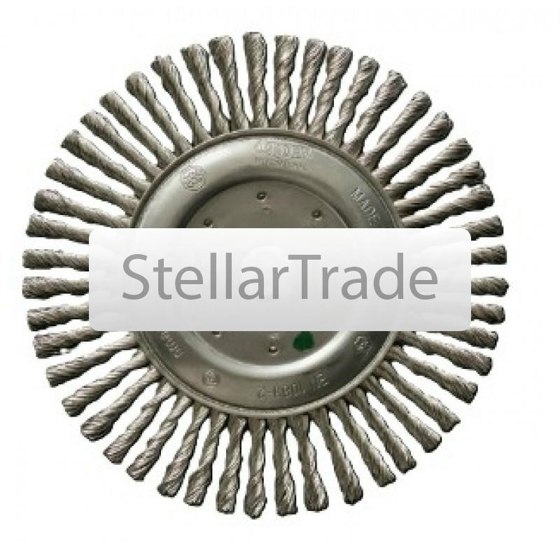 Щётка дисковая D 171 x 6 x 22,2 mm. Жгутовая стальная проволока. Щетки дисковые жгутовые на УШМ (Болгарка) для тяжелых зачистных работ по изделиям из черной стали, выполняют агрессивную и еще→эффективную зачистку благодаря витой скрученной в толстые жесткие жгуты стальной проволоки. Корщетки предназначены в основном для обработки прямых лицевых сварных швов, снятие окалины,