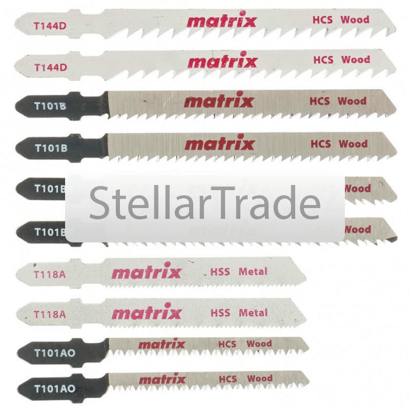 Универсальный набор полотен для электролобзика Matrix T-SET1003 78247 состоит из 10 шт. и предназначен для распиловки дерева, металла, в том числе цветного, а также алюминия, фанеры, ДСП. Пилки с Т-об еще→разным хвостовиком совместимы с большинством современных электролобзиков. Набор пригодится во время проведения ремонта и отделочных работ, будет полезен для занятий творчеством, а также в быту.