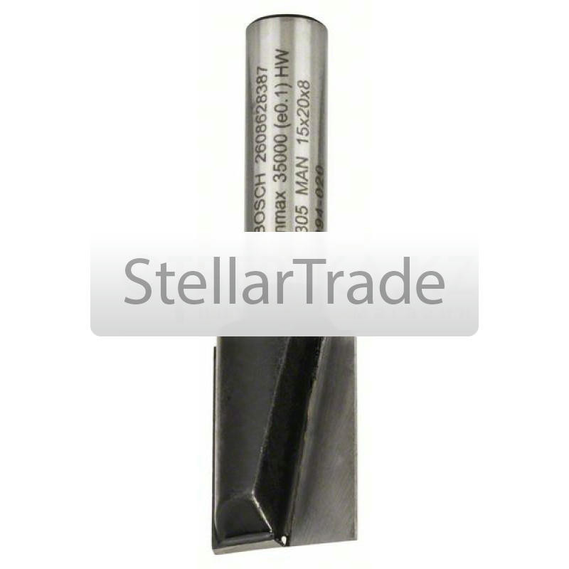 Пазовая фреза Bosch 8 mm, D1 15 mm, L 20 mm, G 51 mm Для универсального фрезерования, фрезерования пазов и фальцев с помощью вертикальных фрезерных машин Для обработки загото еще→вок правильной или произвольной формы Для массива древесины, листовых материалов (например, ДСП и МДФ), полимерных материалов, а также и для абразивных материалов, таких как Corian ® Пазовая фреза