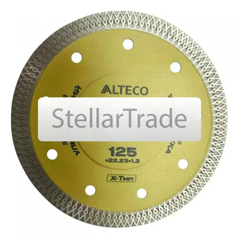 Диск алмазный сплошной ультратонкий X-Тип ALTECO 125x22.23x1.2мм - высокоточный режущий инструмент с ультратонким сплошным алмазным полотном, обеспечивающий чистый и аккуратный рез. Идеален для резки еще→керамической, фарфоровой, стеклянной плитки, керамогранита и мрамора с минимальными сколами и максимальной долговечностью. Диаметр 125 мм, посадочное отверстие 22,23 мм, толщина 1,2 мм. Подходит для профессионального и бытового использования. Характеристики ALTECO X-тип 125x22.23x1.2: Диаметр125 ммКоличество в упаковке1 шт.Макс. частота вращения12250 об/минНазначениеплиткаПосадочный диаметр22.2 ммТолщина1.2 мм