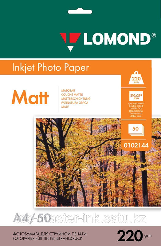 220g A4 50л Lomond матоваяматовая 2-х стор. L0102144 dual side (16п.в кор) Артикул: 0102144 Универсальность: Струйная Материал: Бумага Ширина: 210мм Длина: 297мм Основа: бумажная Покрытие: Ink Jet Coa еще→ted Лицевая сторона: Матовая (Matt) Обратная сторона: Матовая (Matt) Плотность: 220г/м2 Разрешение печати: 2880dpi Односторонняя: Односторонняя Серия: Photo Paper Формат: A4 Листов в пачке:50 Матовая или глянцевая: Матовая/Матовая
