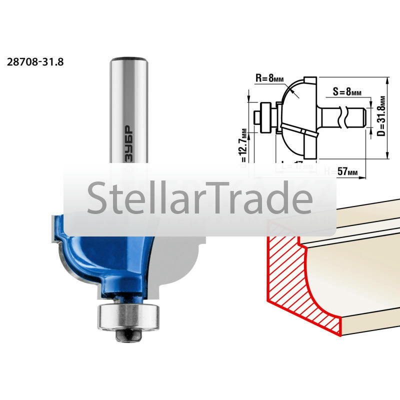 Фреза отлично подходит для скругления кромок при обработке столешниц, полок, шкафов и прочих работ с разнообразными видами древесины. Преимущества ЗУБР 28708-31.8: Заточка пр еще→оизводится только на самых современных станках с ЧПУ. Упорный подшипник позволяет обрабатывать криволинейные кромки без дополнительных приспособлений. Использование ЗУБР 28708-31.8:
