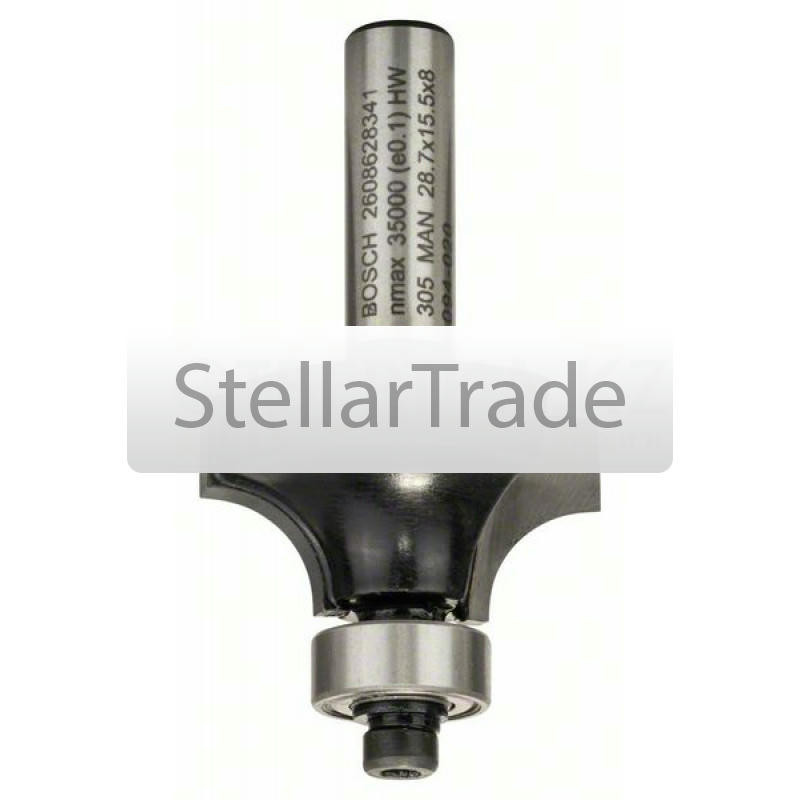 Карнизная фреза Bosch 8 mm, R1 8 mm, L 15,2 mm, G 53 mm Для скругления кромок оконных рам, шкафов, столешниц, полок и каминных обрамлений Шарикоподшипник для простого ведения еще→прямо на заготовке без шаблона Карнизная фреза Bosch Bosch для чистых закруглённых кромок Для массивных пород древесины, таких как ель, бук, дуб, ольха и абразивных материалов Карнизная фреза