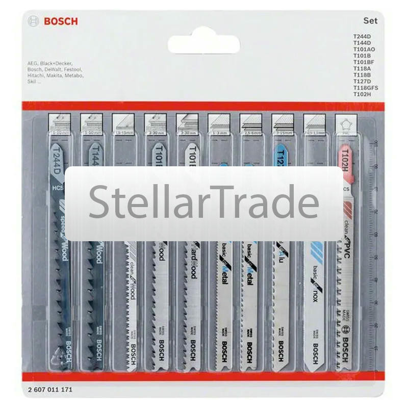 Набор пилок для лобзика Bosch All in One 10шт. 2607011171 - используется для работ по различным материалам с помощью электролобзика. Комплектация: T244D для резки древесины еще→T144D для резки древесины T101AO для резки древесины T101B для резки древесины T101BF для рези твердой древесины T118A для резки металлических изделий T118B для резки металлических