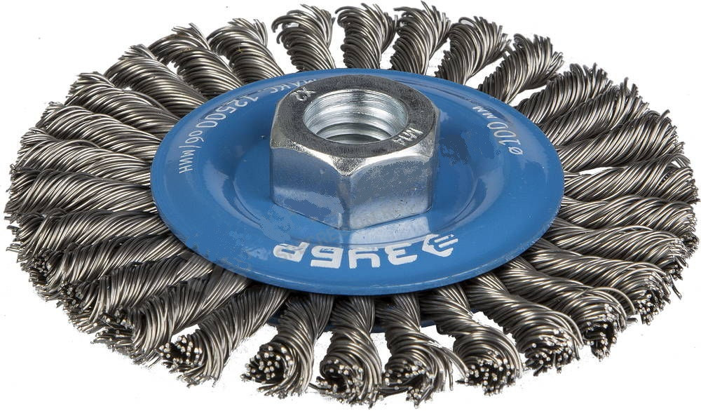 Щетка ЗУБР ЭКСПЕРТ дисковая для УШМ, плетеные пучки стальной проволоки 0,5мм, 100мм/22мм