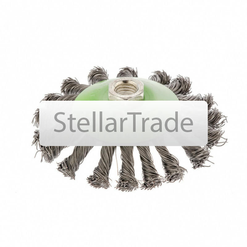 Применяется для грубой очистки металлических и деревянных поверхностей, снятия ржавчины, грязи, удаления лакокрасочных покрытий, получения заданной шероховатости с помощью УШМ (болгарки). N max 12500 еще→об/мин. В процессе работы необходимо использовать индивидуальные средства защиты (очки, респиратор, наушники, перчатки, обувь). Особенности Гайка с посадкой М14 для закрепления на УШМ.