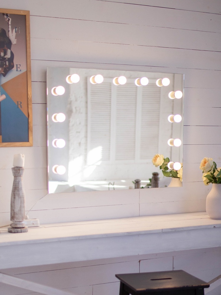 Зеркало интерьерное Континент "Гримерное 13 ламп." (4660007807345) белый 466000780734567 025Купить!тг.Greenprice.kzДоставка: из АлматыПожаловатьсяЗеркало со скрытой подсветкой это очень стильно и современно, оно прекрасно выписывается в интерьер любой ванной комнаты. Кроме того, зеркало оснащено сенсорным выключателем освещения. Скрытая подсв еще→етка зеркала встроена в непроницаемый короб сзади изделия. Встроенная LED-подсветка выдерживает до 50 тыс. часов работы в непрерывном режиме. Зеркало Континент "Гримерное 13 ламп." (900x700)