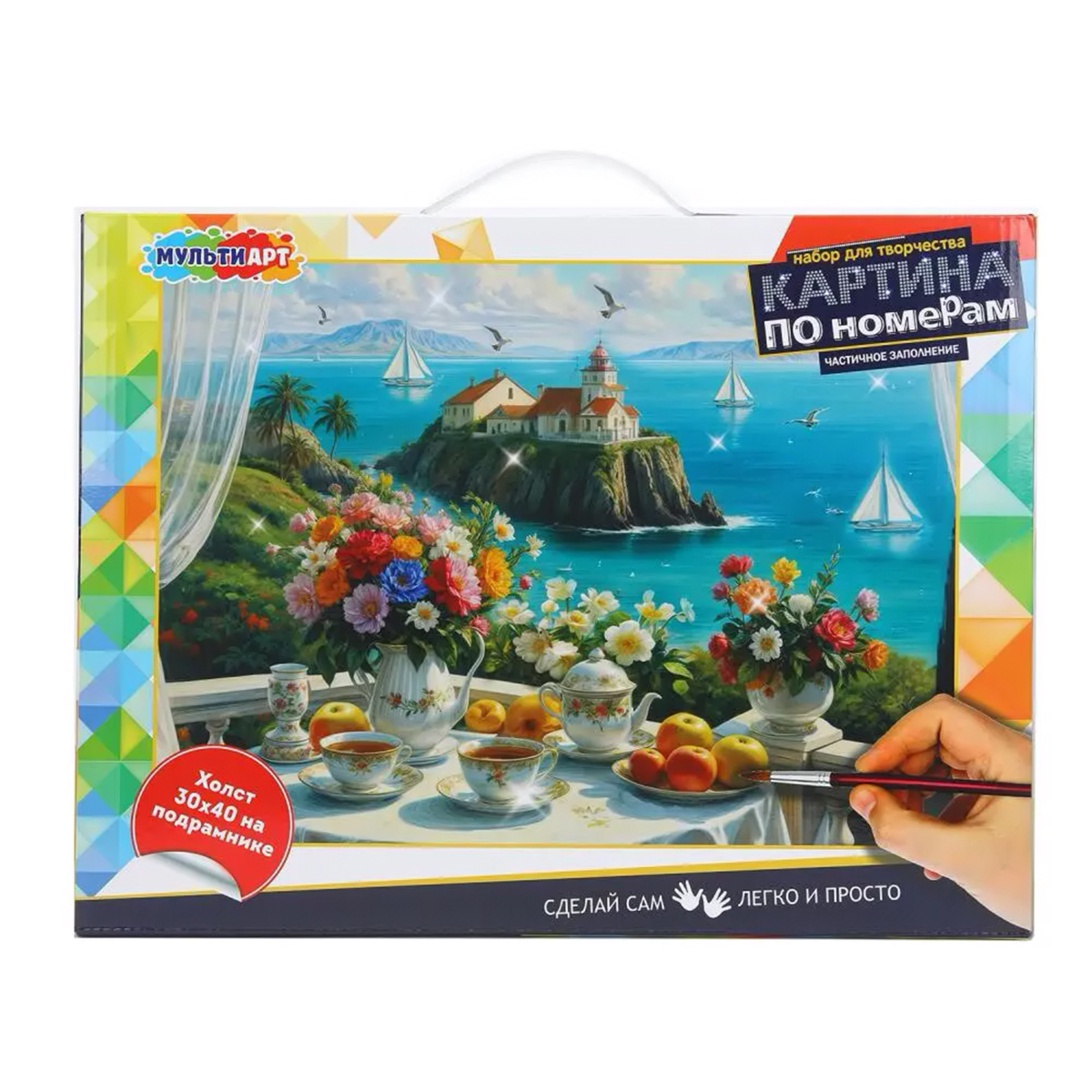 Картина по номерам 30*40 см с частичным заполнением, Морской пейзаж10 150Купить!тг.Marwin.kzДоставка: из АлматыПожаловатьсяНабор для творчества - картина по номерам «Морской пейзаж» ТМ «Мульти Арт» - отличный подарок для маленького художника. Комплектация и особенности: - с частичным заполнением - основа для раскр еще→ашивания - холст на подрамнике с нанесенным контуром рисунка - краски - кисти - набор креплений - контрольный лист - инструкция на обороте упаковки - безопасно для детей. Ребенок увлекательно и с пользой проведет время, расписывая холст с нанесенной основой и цветовыми подсказками. Готовую картину можно использовать для украшения комнаты или в качестве подарка, сделанного своими руками. Занятия с набором для творчества ТМ «Мульти Арт» развивают: - внимание и усидчивость - творческое мышление -…