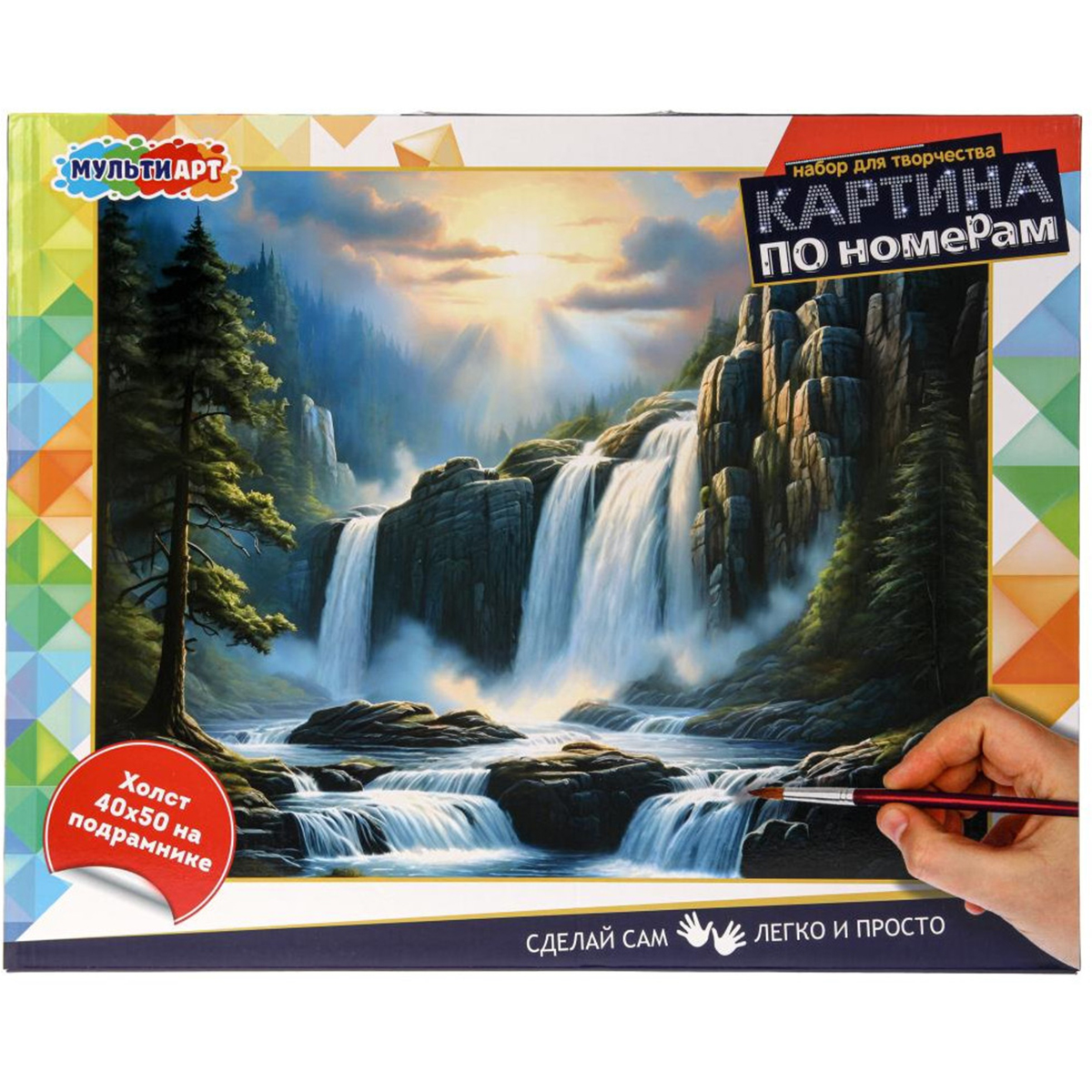 Картина по номерам 40*50 см, Горный водопад10 650Купить!тг.Marwin.kzДоставка: из АлматыПожаловатьсяНабор для творчества — картина по номерам «Горный водопад» ТМ «Мульти Арт» — отличный подарок для тех, кто хочет почувствовать себя настоящим художником. Комплектация и особенности: • холст на еще→подрамнике с нанесённым контурным рисунком; • набор акриловых красок; • кисти; • комплект креплений; • инструкция и рекомендации по использованию на обороте упаковки. Ребёнок увлекательно и с пользой проведёт время, расписывая холст с нанесённой основой и цветовыми подсказками. Готовую картину можно использовать для украшения комнаты или в качестве подарка, сделанного своими руками. Занятия с набором для творчества ТМ «Мульти Арт» развивают: • внимание и усидчивость; • творческое мышление; • сенсорное и…
