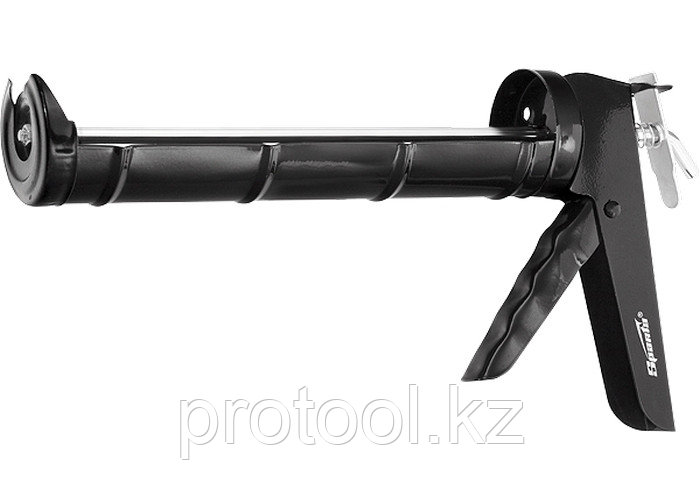 Пистолет для герметика, 310 мл, "полуоткрытый", круглый шток 8 мм, Heavy Duty// SPARTA2 931Купить!тг. Маркетплейс: Satu.kz Protool.kz - продажа электроинструмента, ручные ст Доставка: по Казахстану ПожаловатьсяПредназначен для работы со всеми стандартными картриджами 9” (310 мл). Гладкий круглый шток диаметром 8 мм. Утолщенные стенки корпуса. Надежная литая рукоятка. Конструкция корпуса усилена от перекоса еще→тремя поперечными ребрами жесткости.