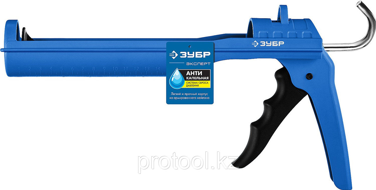 Лёгкий полукорпусной пистолет ЗУБР для герметика Эксперт, 310 мл, серия Профессионал3 339Купить!тг. Маркетплейс: Satu.kz Protool.kz - продажа электроинструмента, ручные ст Доставка: по Казахстану ПожаловатьсяСовременные пистолеты для герметика необходимы для точного и удобного нанесения данного строительного материала на обрабатываемую поверхность. Без этих инструментов просто не обойтись, если нужно заде еще→лывать трещины и щели, уплотнять стыки при монтаже окон и дверей, устанавливать сантехнику, проводить утепление дома. Пистолет для герметиков подходит для работы с картриджами объемом 310 мл, имеет прочный корпус из армированного нейлона скелетного типа, Данная спецификация обеспечивает прочность и надежность конструкции пистолета при использовании. Техническая информация Объем, мл 310 форма штока круглый Вид пистолета полуоткрытый Материал ударопрочный пластик