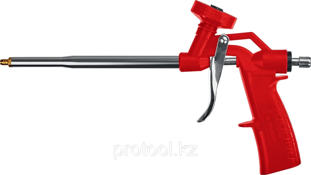 ЗУБР тефлоновое покрытие, пистолет для монтажной пены 06866z02 Профессионал7 433Купить!тг. Маркетплейс: Satu.kz Protool.kz - продажа электроинструмента, ручные ст Доставка: по Казахстану ПожаловатьсяПистолет для монтажной пены ЗУБР 06866_z02, применяется для точного нанесения профессиональной монтажной пены на поверхность при выполнении монтажно-строительных или ремонтных работ. Профессиональный еще→инструмент с полным тефлоновым покрытием. Повышенная герметичность в сочетании с высоким уровнем надежности. Комплектация: Пистолет для монтажной пены - 1 шт. Габариты и вес в упаковке: Длина: 36 см Ширина: 5 см Высота: 16 см Вес в упаковке: 0.43 кг