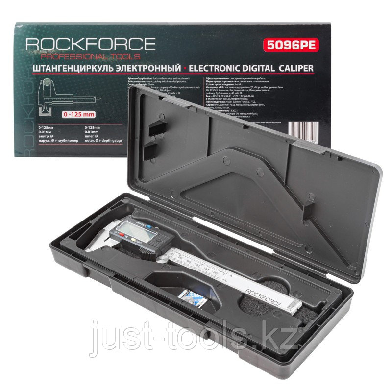 ROCKFORCE Штангенциркуль электронный (0-125мм, 0.01мм; внутр. Ø, наруж. Ø + глубиномер), в пластиковом футляр+ RF-5096PEМеталлический штангенциркуль электронный цифровой позволяет быстро и точно измерять размеры, диапазон измерений от 0 до 125 миллиметров с шагом измерения 0,01 миллиметра. Также штангенциркуль цифровой дает возможность измерять глубину благодаря наличию глубиномера. Методы измерений: внутренний диаметр, внешний диаметр, измерение глубины, измерение уступов. Цифровой 14 580 тг.Just-tools.kzДоставка: из АлматыПожаловатьсяКупить!