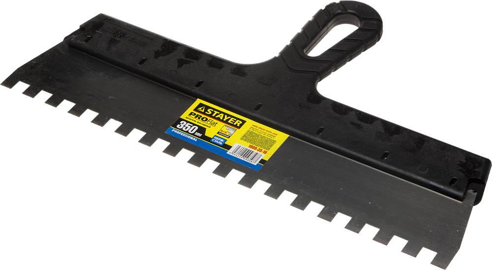 — разновидность шпателей (см. соответствующий пункт), имеющая на лезвии зубчики особой формы. Такие инструменты предназначены в основном для нанесения клеевых смесей — форма лезвия обеспечивает равномерность распределения смеси по обрабатываемой поверхности. Шпатели этого типа могут различаться по размеру зубчиков: чем толще слой наносимого клея — тем крупнее должны быть зубчики.