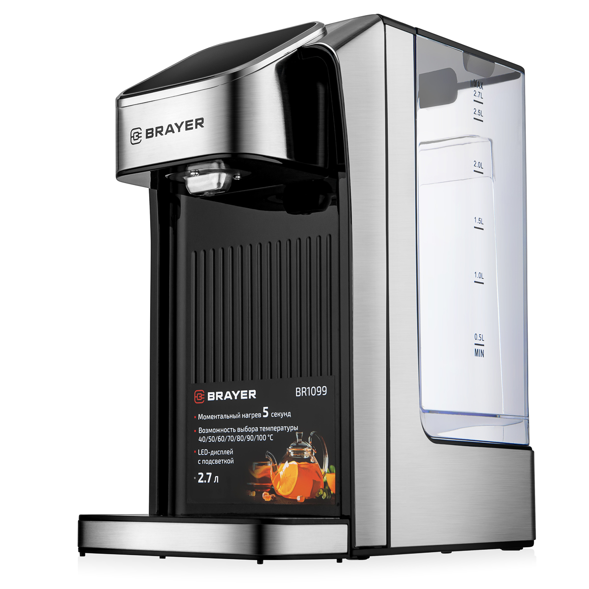 Термопот Brayer BR1099 (BR1099) серебристыйТермопот Brayer BR1099 — стильное и функциональное устройство для дома или офиса. С объемом 2.7 л и проточным электронасосом, он позволяет легко и быстро разливать воду, обеспечивая 8 температурных режимов от 40 °C до 100 °C. Сенсорное управление и дисплей с индикацией всех важных функций делают эксплуатацию простой и безопасной, а встроенная защита предотвращает включение без воды и перегрев. Дополнительно предусмотрены дозировка порций и съемная крышка для удобства обслуживания. 79 696 тг.Greenprice.kzДоставка: из АлматыПожаловатьсяКупить!