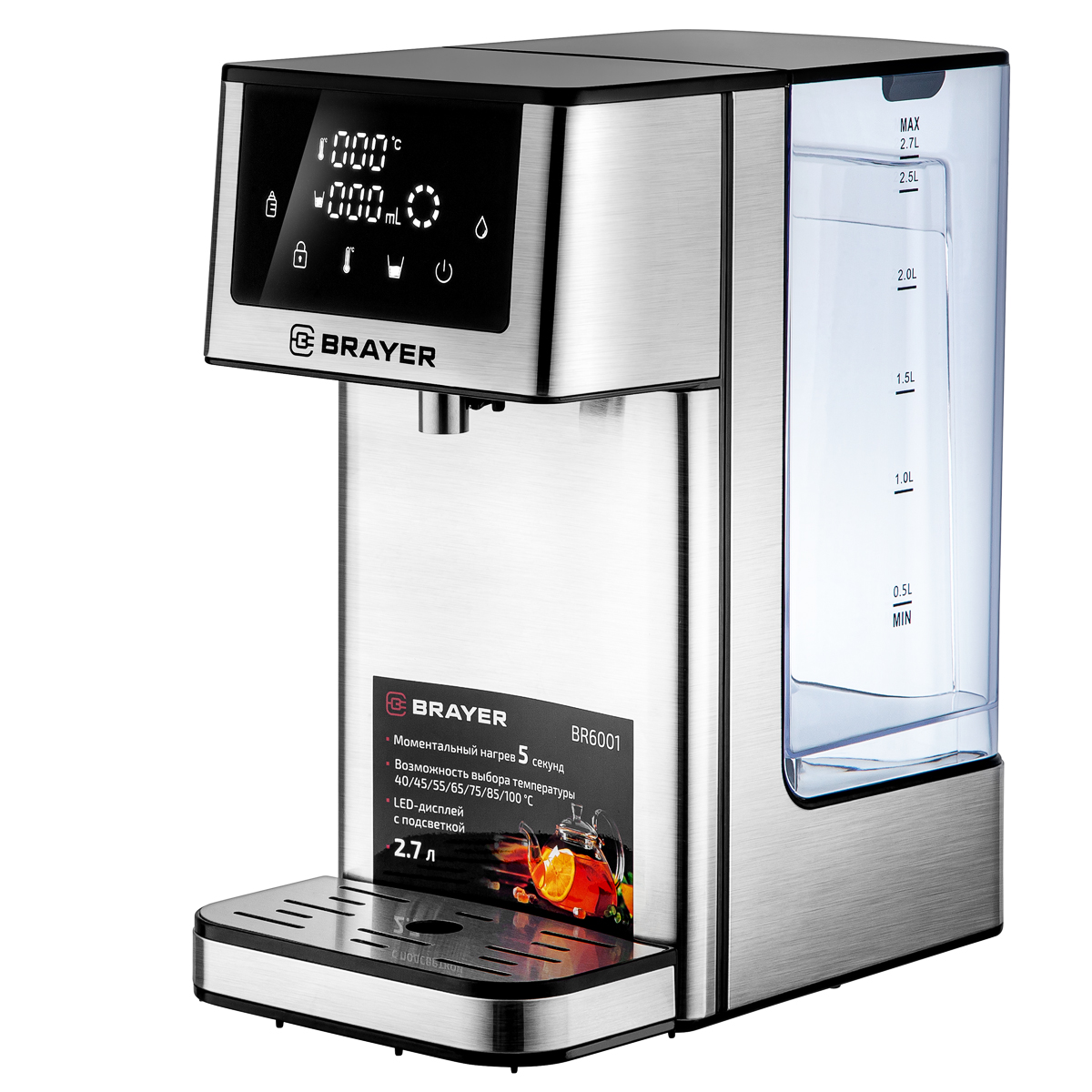 Термопот BRAYER BR6001 (6001BR) серебристый 6001BRТермопот BRAYER BR6001 сочетает стильный корпус из нержавеющей стали с передовыми функциями для дома и офиса. Он оснащён LED-дисплеем с подсветкой и сенсорным управлением, поддерживает 7 температурных режимов от 40 °C до 100 °C, а также выбор объёма порции воды или непрерывной подачи. Устройство безопасно в эксплуатации благодаря блокировке подачи воды, защите от перегрева и индикаторам уровня воды и необходимости очистки. Моментальный нагрев за 5 секунд и функция подачи воды 40°С для детских смесей делают его практичным и удобным. 93 965 тг.Greenprice.kzДоставка: из АлматыПожаловатьсяКупить!