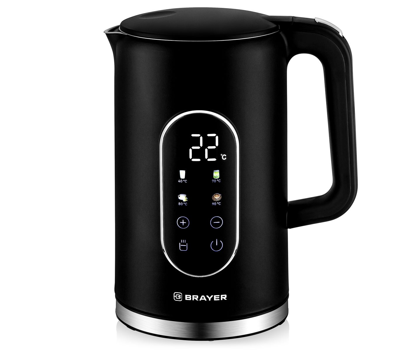 Электрический чайник BRAYER BR6107-BK черныйЭлектрический чайник BRAYER BR6107BK имеет максимальную мощность 2200 Вт и объем 1.7 л. Корпус выполнен из нержавеющей стали с пластиковым покрытием и оснащен технологией Cool Touch, что предотвращает нагрев внешней поверхности. Устройство поддерживает сенсорное управление и предлагает функции кипячения и подогрева воды для различных сортов чая (40-100 °C), а также поддержание заданной температуры в течение 2 часов. Чайник автоматически отключается при закипании и при отсутствии воды. 28 760 тг.Greenprice.kzДоставка: из АлматыПожаловатьсяКупить!
