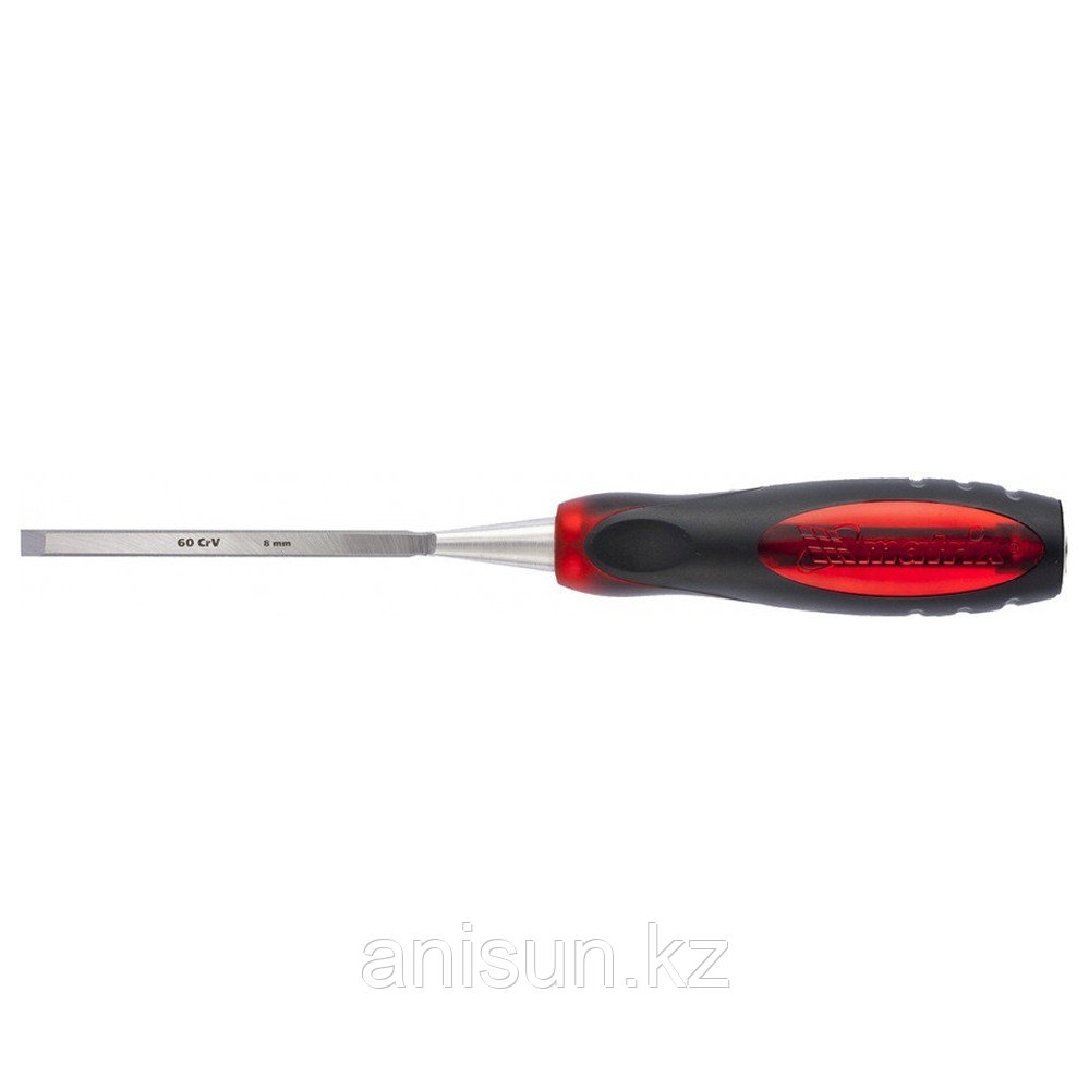 Долото-стамеска "Тигровый глаз", 18 мм, двухкомпонентная обрезиненная рукоятка// MATRIXДолото-стамеска «Тигровый глаз» изготовлено из легированной стали 65 Mn. Твердость – 65 HRc. Ударопрочная рукоятка изготовлена из твердой пластмассы с резиновым покрытием. Имеет металлический затыльник и сквозной стержень, что позволяет наносить по инструменту удары молотком. Предназначены для строгания, выборки неглубоких гнезд, пазов, прорезания отверстий в древесине мягких и твердых пород с использованием киянки или молотка. 2 008 тг. Маркетплейс: Satu.kz Protool.kz - продажа электроинструмента, ручные ст Доставка: по Казахстану ПожаловатьсяКупить!