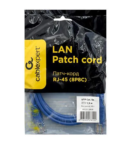 Патч корд UTP 5e-Cat 1.5 m Cablexpert PP12-1.5M/B синий 532 тг.Ants.kzДоставка: из АлматыПожаловатьсяКупить!