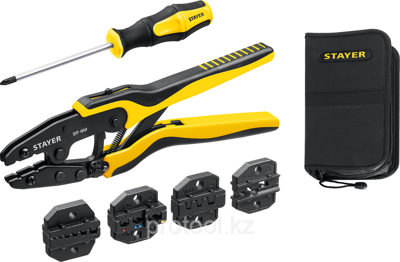 SP-4M набор пресс-клещи, 4 матрицы, в сумке чехле, STAYER ProfessionalПрофессиональный обжимной инструмент гарантирует наивысшее качество электромонтажных работ. Обжим втулочных наконечников НШВИ, НШВ: 0.5–10 мм2 Обжим изолированных наконечников НКИ, НВИ, ГСИ, РПИ, КИЗ: 0.5–6 мм2 Обжим неизолированных наконечников ТМЛ, ГМЛ: 0.25–6 мм2 Обжим автоклемм РП: 0.5–6.0 мм Усиленный 3-шарнирный рычажный механизм Храповый механизм: полный цикл опрессовки Рычаг 18 865 тг. Маркетплейс: Satu.kz Protool.kz - продажа электроинструмента, ручные ст Доставка: по Казахстану ПожаловатьсяКупить!