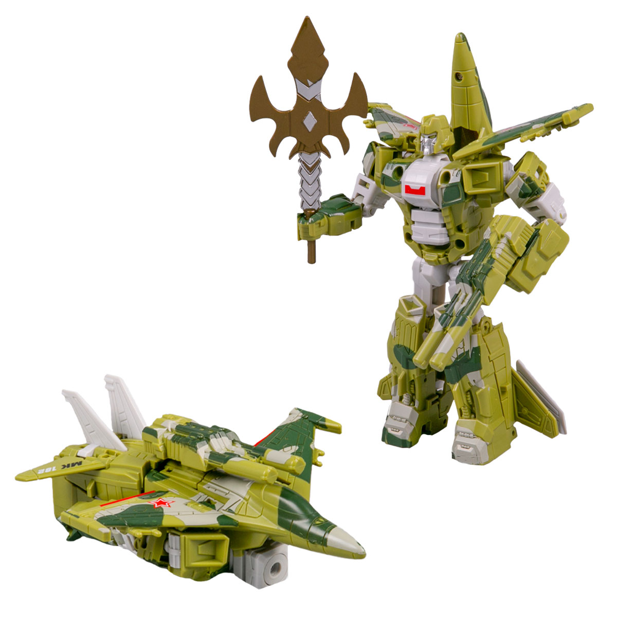 Changerobot: Военный робот-трансформер Истрибитель, зеленый4 990Купить!тг.Marwin.kzДоставка: из АлматыПожаловатьсяИгровой набор «ChangeRobot» - лучший подарок для Вашего мальчугана! Трансформер может перевоплощаться в истребитель. Ребенок получает сразу две игрушки в одной. Собери свою коллекцию трансформеров, еще→чтобы затеять целые сюжетно-ролевые игры с красочными баталиями и боевыми сценами. Игрушка изготовлена из качественного пластика, который абсолютно безопасен для детей. В комплекте: трансформер, оружие (7 см), трезубец (11.5 см). - Размер робота - трансформера (г/ш/в): 6 х 10 х 20 см - Размер в виде истребителя (г/ш/в): 16 х 13 х 6 см - Размер упаковки (г/ш/в): 9 х 21.5 х 23 см - Материал: пластик - Страна производитель: Китай
