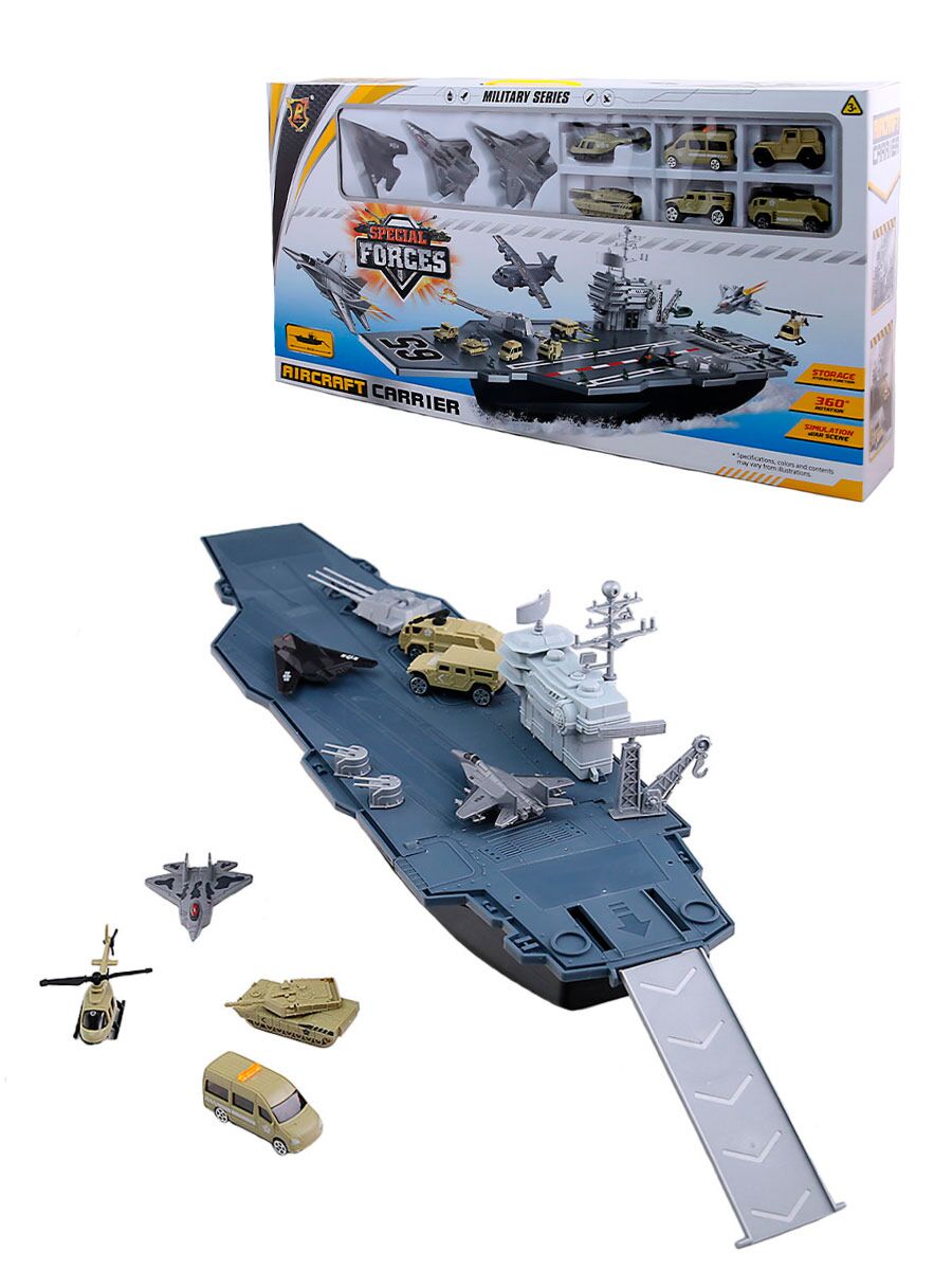 OS: Игр.н-р "Авианосец" + 9 транспорт.средств17 390Купить!тг.Marwin.kzДоставка: из АлматыПожаловатьсяИгровой набор авианосец - настоящее удовольствие для ценителей военной техники. Помимо большого и многофункционального авианосца в состав набора входят самолеты, вертолеты, специальная военная техни еще→ка. Элементы набора изготовлены из качественного пластика. С подобным авианосцем и целым комплектом различной боевой техники ребенок сможет придумать множество интереснейших игр, начиная от военных действий в открытом море и заканчивая масштабными сражениями с противником на суше. Набор содержит: авианосец, вертолет, 3 самолета, 5 военных машин. Размер авианосца около 86 х 20 х 18 см Размер упаковки (ш/в/г): 72 х 36 х 9,6 см Материл: пластик Возраст: 3+ Страна изготовитель: Китай
