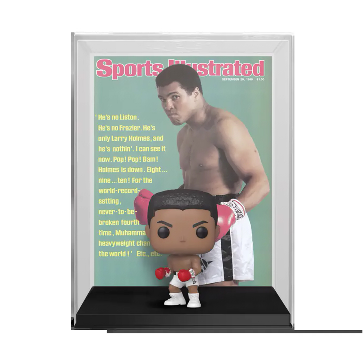 Фигурка Funko POP! Sport - Sports Cover: Boxing - Muhammad Ali21 990Купить!тг.Marwin.kzДоставка: из АлматыПожаловатьсяМуха́ммед Али́ — американский боксёр-профессионал, выступавший в тяжёлой весовой категории; один из самых известных боксёров в истории мирового бокса. Чемпион XVII Летних Олимпийских игр 1960 года в еще→полутяжёлой весовой категории, абсолютный чемпион мира в тяжёлом весе. Фигурка выполнена из качественного винилового материала с большим вниманием к деталям и ярким окрасом. Это отличный подарок коллекционерам и фанатам культовых саг, комиксов, мультсериалов, знаменитостей, фильмов и игр для каждой вселенной. Фигурка отличается высокой детализацией и уникальным дизайном в виде большой головы. Материал: винил.