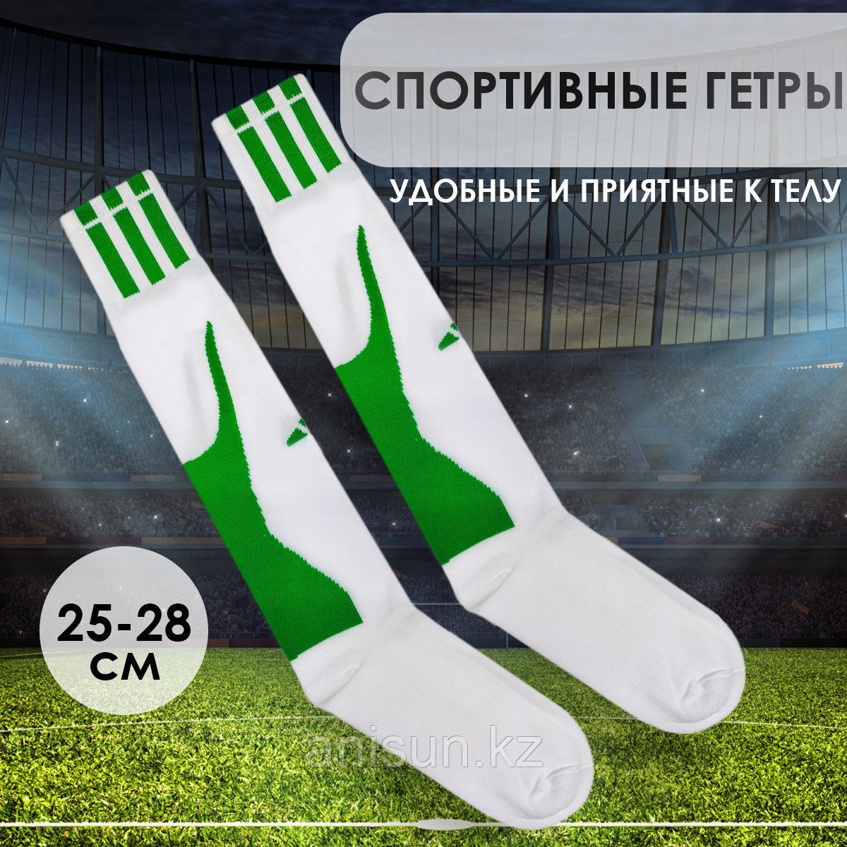 Футбольные гетры спортивные белые с зеленой надписью2 845Купить!тг. Маркетплейс: Satu.kz Ani-Sun Trade Доставка: по Казахстану ПожаловатьсяФутбольные гетры. Если Вы давно играете в футбол, тогда Вы знаете какая экипировка нужна для футболиста, это футбольная форма, щитки и так далее. Немаловажной частью футбольной экипировки являются гет еще→ры. Гетры защищают от попадания грязи, песка, камней в кроссовки. Согласитесь, неприятно бегать когда в Ваших кроссовках параллельно с Вашими ногами бегают и камешки, от которых